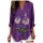 Women Thin Pansy Floral Print Casual Long Sleeve V Neck Shirt Top T Shirts Women Coffee